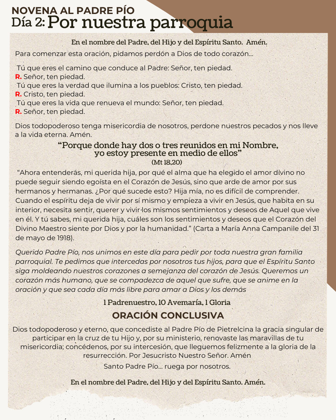 - Canonización y Devoción: El Padre Pío murió el 23 de septiembre de 1968 (es por ello que mensualmente las Parroquias del Padre Pío lo conmemoran cada 23). Su legado de santidad, humildad y entrega total a Dios continúa inspirando a millones de personas en todo el mundo. Fue canonizado por el Papa Juan Pablo II el 16 de junio de 2002 y es conocido en todo el mundo como un poderoso intercesor en la oración por los enfermos y los que sufren.Su vida y enseñanzas siguen siendo una fuente de inspiración y ejemplo de santidad para todos aquellos que buscan crecer en su relación con Dios y vivir una vida de auténtica devoción y entrega al servicio de los demás.